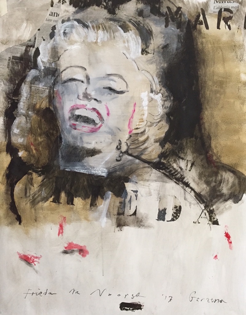 Ik woon en werk in Noord Italie,in het bergdorp Garzeno boven het Como-meer. Mijn schilderijen kenmerken zich door een combinatie van figuratie en abstractie. Grafische elementen, foto's, tekst,collages van stukken krant vormen een essentieel onderdeel van de totale compositie.