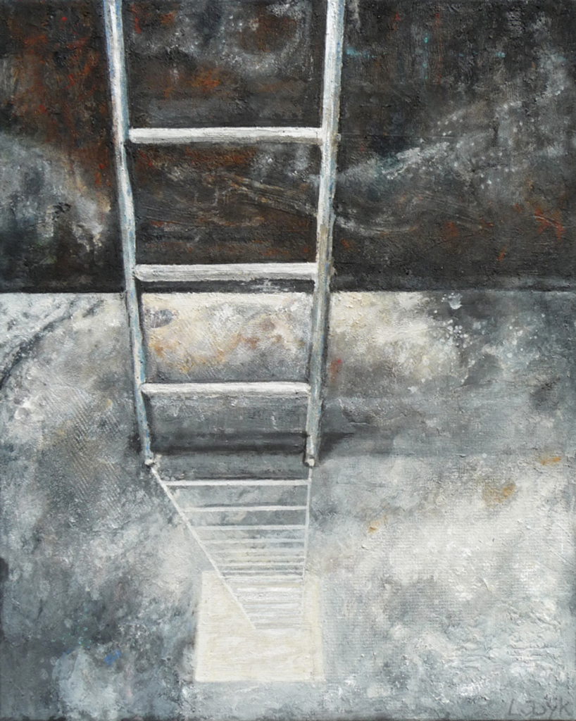 Iets in de buitenwereld intrigeert mij en door deze impressie uit te werken wordt zij blijvend deel van mijn binnenwereld. Laag na laag bouw ik aan de uiteindelijke vorm. Tijdens het werken komt er een stroom van associaties op gang. Het is een constant zoeken naar evenwicht tussen de verf en de andere materialen.