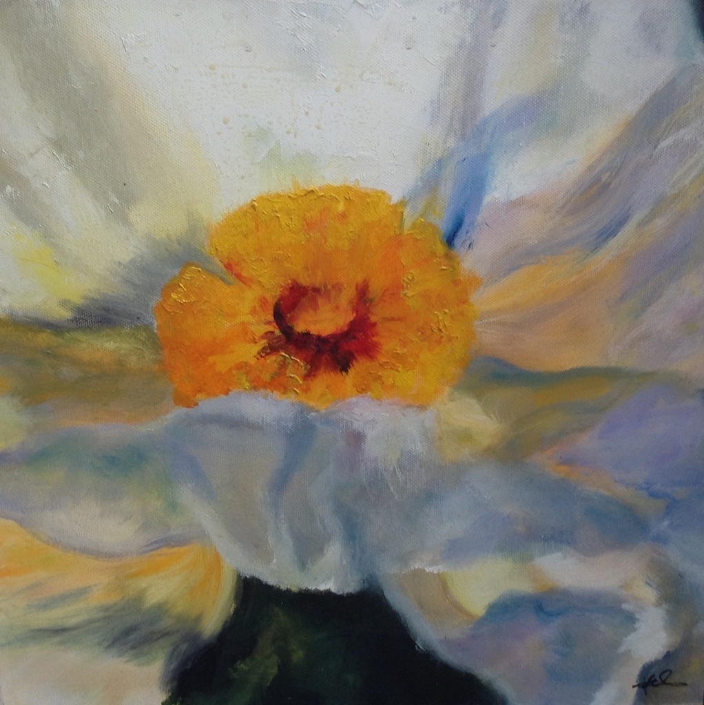 Door haar zoektocht van kleur en lichtinval, het experimenteren met andere materialen brengt Karin een impressie van abstracte tot stand. Zo probeert zij de sfeer en intimiteit van dat moment vast te leggen op doek.