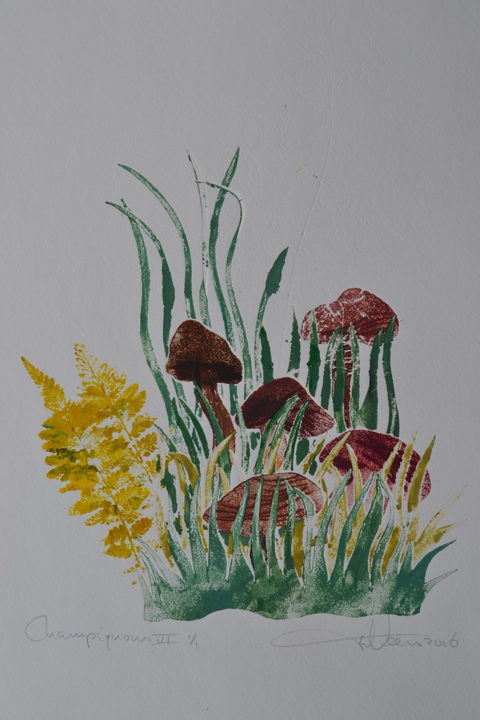 Champignons VI - droge naald en aqatint - uitgezaagde etsplaatjes - meerkleuren druk - oplage 1/1