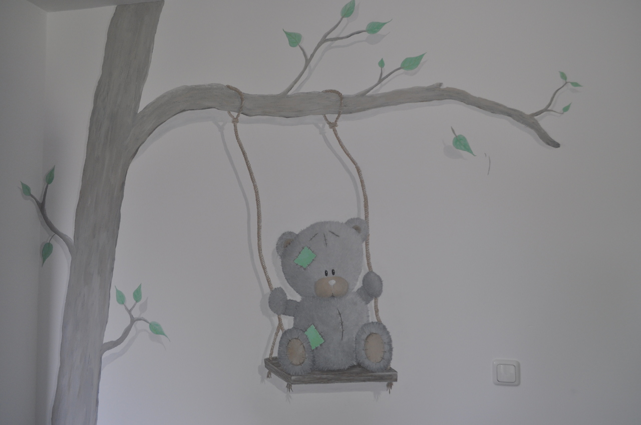 Beertje Schommel Schommelen Beer Mint Mintgroen Boom Muurschildering Mural Tree Bear Swing Baby