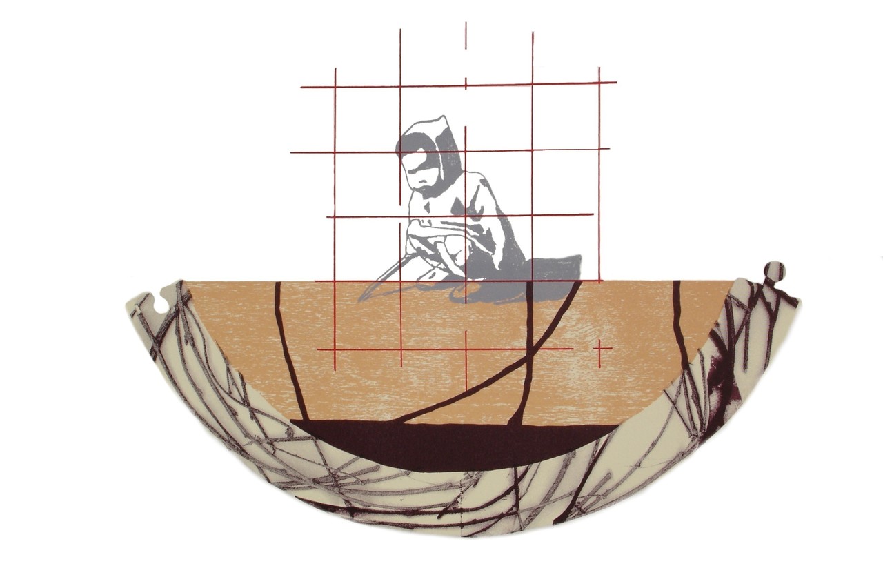 Meisje Grijs Rood Kind Hout Bruin Takken Zeefdruk Raster Contour Spoorbaan