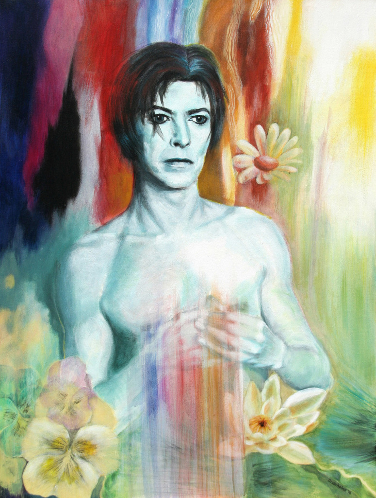 David Bowie: zijn kleurrijkheid is voor eeuwig. Rand (1,5 cm) meegeschilderd.