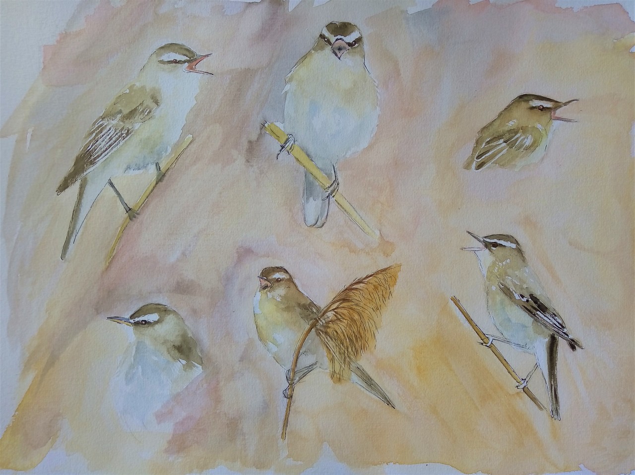 Aquarel studie van de Rietzanger/sedge warbler 300 grams Aquarelpapier