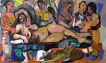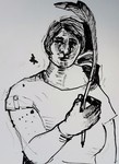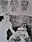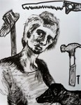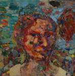 Deze pinhole is direct gefotografeerd op papier. Samen met een collega (Nathalie van Dijk) maken we wekelijks een selfie in de meest elementaire vorm van fotografie. Een klein gaatje in een kokertje waardoor het licht direct een lichtgevoelig papier belicht. De uitkomst is vrij onvoorspelbaar. De tijd varieert van 6 tot 10 minuten. Het vangen van een langere tijd in een stilstaand beeld vind ik fascinerend.
