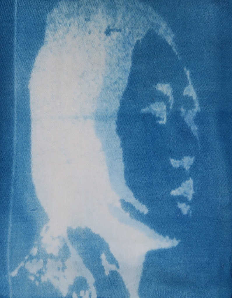 Wit Blauw Portret Doek Op Negatief Cyanotipie