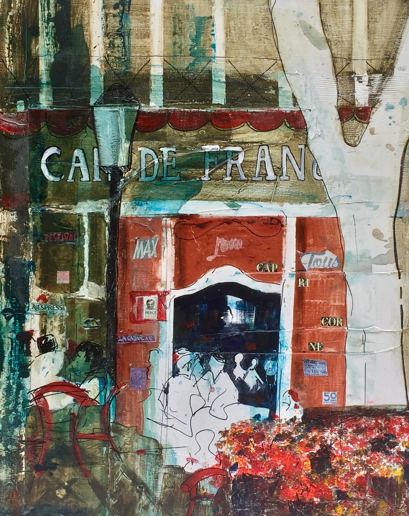 Acryl Mixed Media Frankrijk Tafereel Collage Zomer Terras France