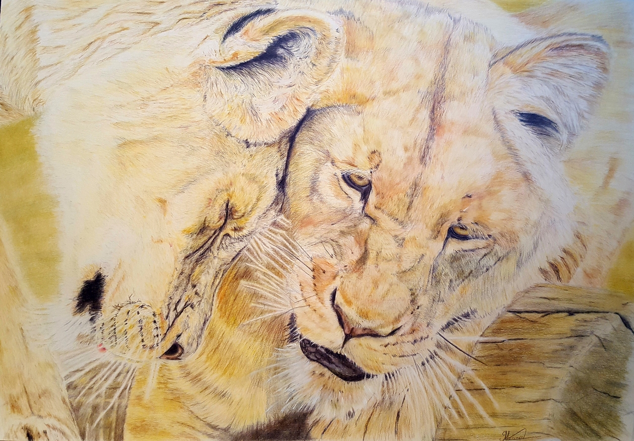 tekening van twee leeuwinnen