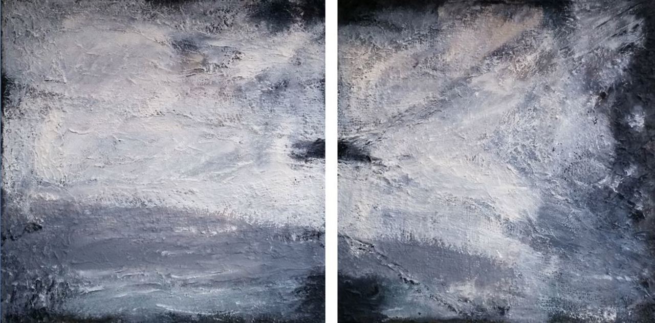 Iets in de buitenwereld intrigeert mij en door deze impressie uit te werken wordt zij blijvend deel van mijn binnenwereld. Laag na laag bouw ik aan de uiteindelijke vorm. Tijdens het werken komt er een stroom van associaties op gang. Het is een constant zoeken naar evenwicht tussen de verf en de andere materialen.