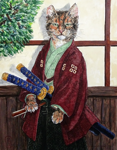 Arie de Jong (Alkmaar, 1961) verbindt in haar werk haar passie voor katten met haar interesse voor de Japanse cultuur en (krijgs)geschiedenis.