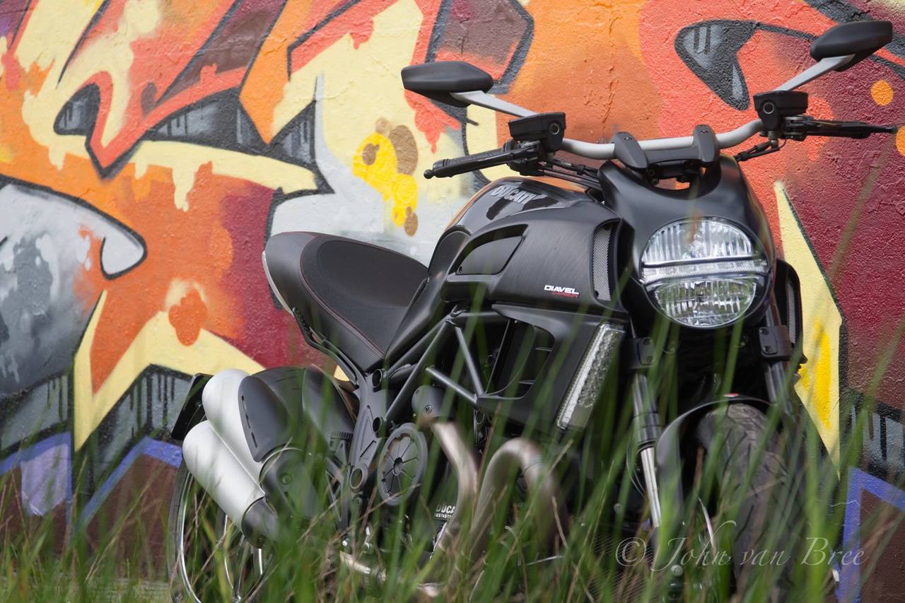Motor Ducati Diavel tijdens motorshoot in de Berenkuil
