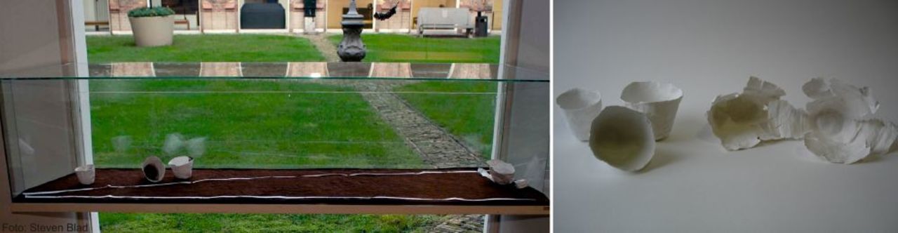 De Geurherinneringen #1 Turkse Koffie & Droste Cacao koffie&cacao-sporen in papier-maché kopjes op bed van koffie Kloostergangen/Haarlem