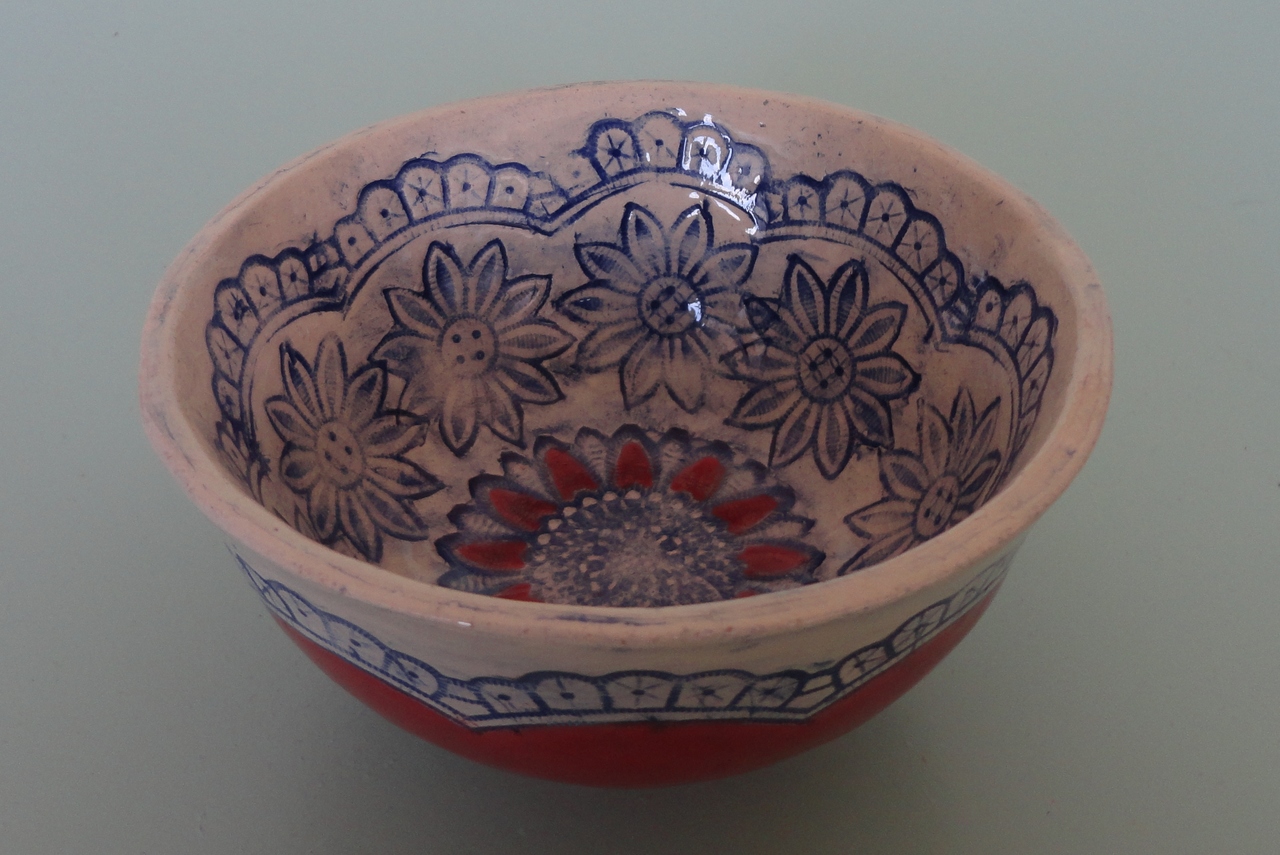 klein rond schaaltje met bloemmotief in reliëf