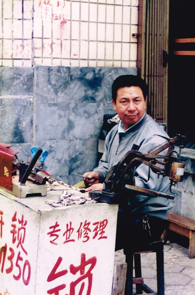 Man op straat aan het werk in China