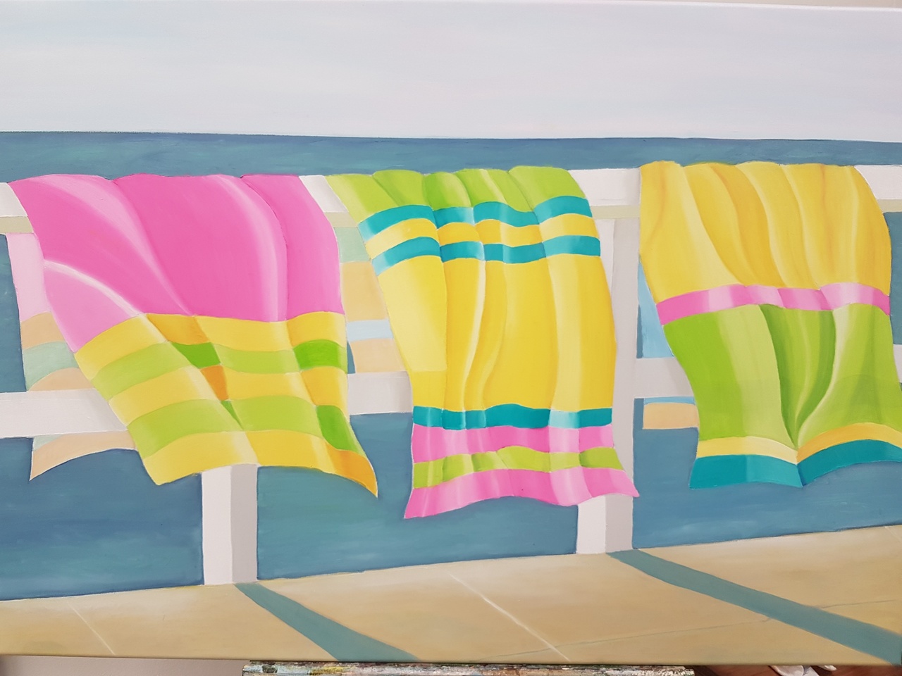 Nadine van de Luijtgaarden (Amsterdam, 1970) In mijn werk probeer ik zo realistisch mogelijk te zijn. Met name heldere, frisse en aansprekende kleuren spreken mij aan. Een voorkeur heb ik voor strandtaferelen, met name strandhuisjes. Zodra ik deze zie wil ik ze vastleggen met de camera, waarna ik ze ga schilderen. De camera is de laatste jaren voor mij vaak een start van de inspiratie. Net als wandelen op het strand, staat schilderen voor mij tot wegdromen van de waan van alledag. Ik heb geen artistieke opleiding genoten. Ooit gestart met een cursus schilderen in aquarel. Van daaruit doorgegroeid naar schilderen met acryl, wat uiteindelijk mijn favoriet bleek te zijn.