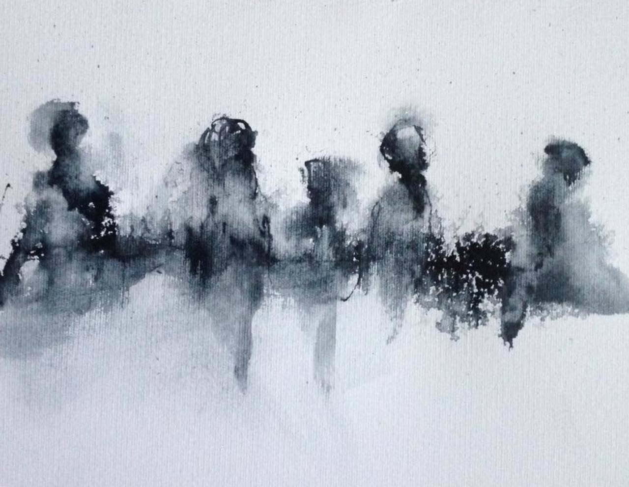 'Mijn mens' ontstaat toevallig; in een wirwar van lijnen, vlekken en kleuren zoek ik mensen (meestal vrouwen en kinderen) die met elkaar verbonden zijn en die meestal 'niet perfect' zijn.