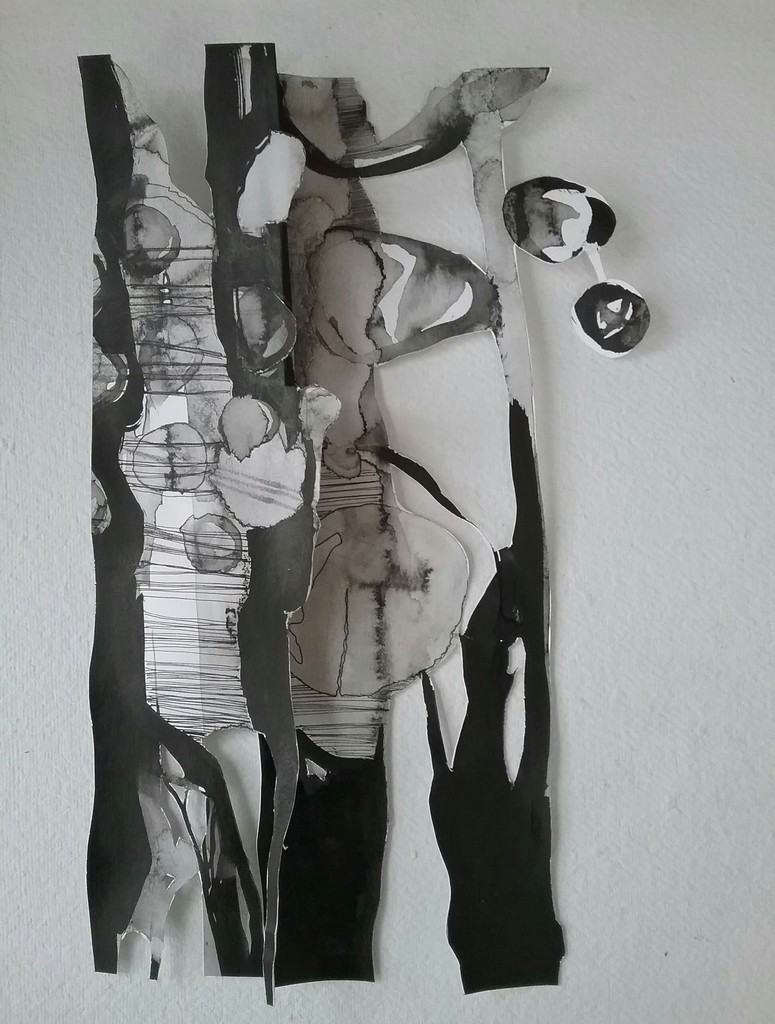 Ruimtelijke tekeningen en collages, geïnspireerd door alle organische vormen die de natuur rijk is, vormen nieuwe miniwerelden op zich.