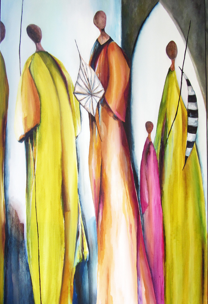 Figuratief Mensen Geel Oker Groen Africa Afrika Afrikaanse Kleurrijk Figuren People Figures