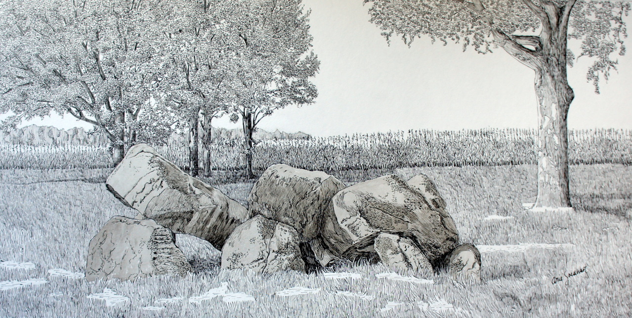 Het is een flink stukje lopen ,naar dit Hunebed , omringt door maisvelden en eiken bomen