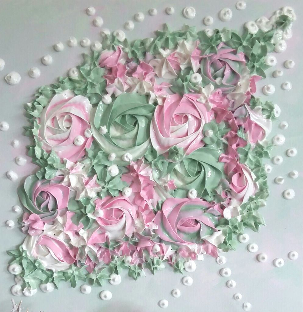 Romance nr. 1. Verfsculptuur op 3D canvas-doek. Zachte pasteltinten geven dit werk een romantische uitstraling.
