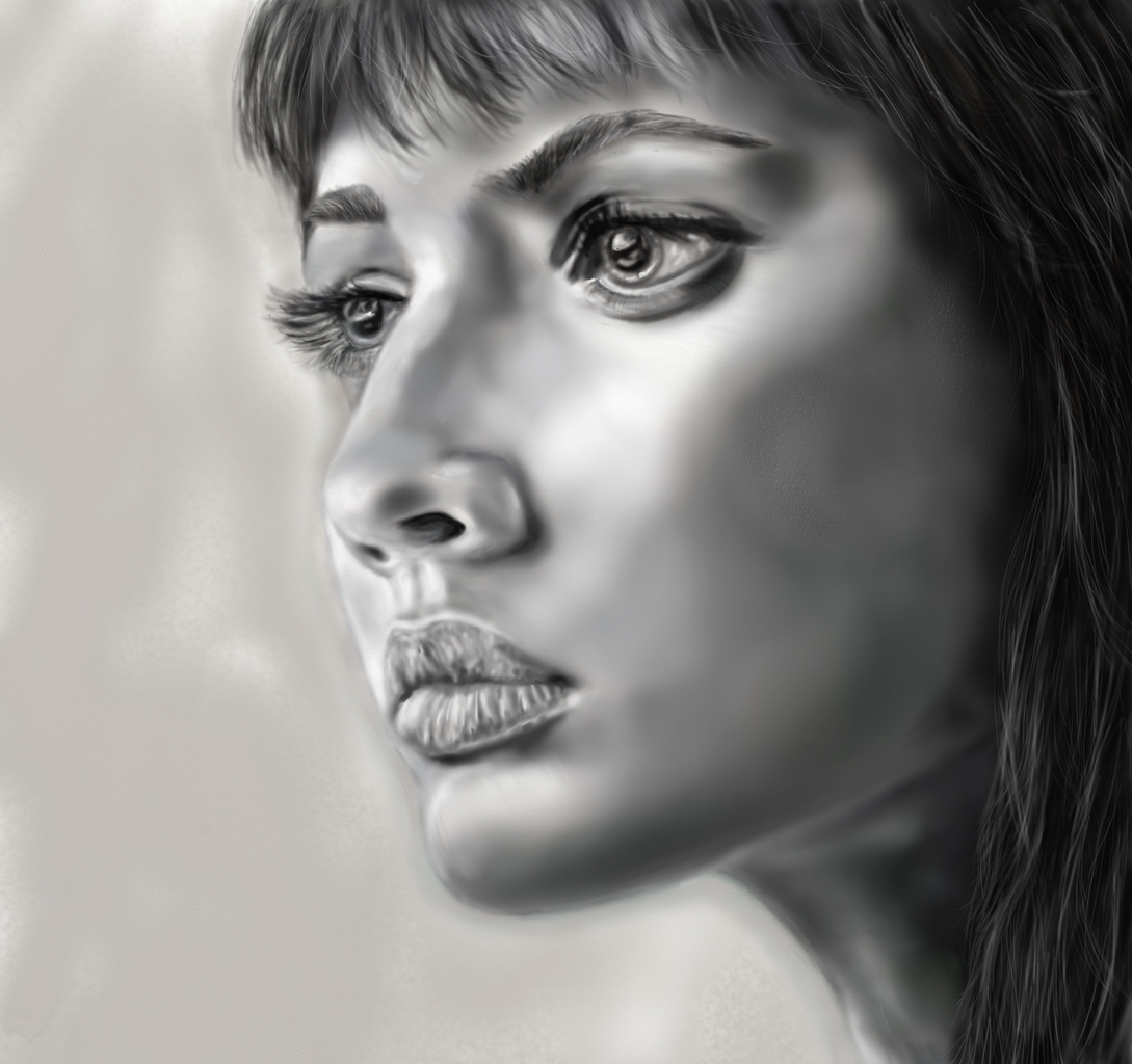 Dit portret is digitaal getekend met een tekentablet en tekensoftware.
