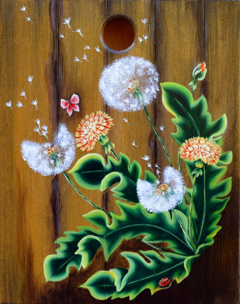 Decoratie houten snijplank met handgemaakte acryl schilderij op de voorzijde. Het schilderij is gelakt en aan de achterzijde ondertekend. Het wordt geleverd met een certificaat van echtheid.