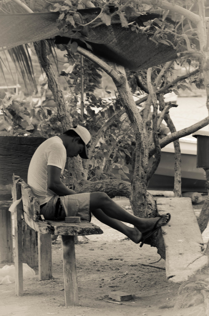 Portret Visser Colombia Zwart Wit Strand Zee Boot Bootje Vissen