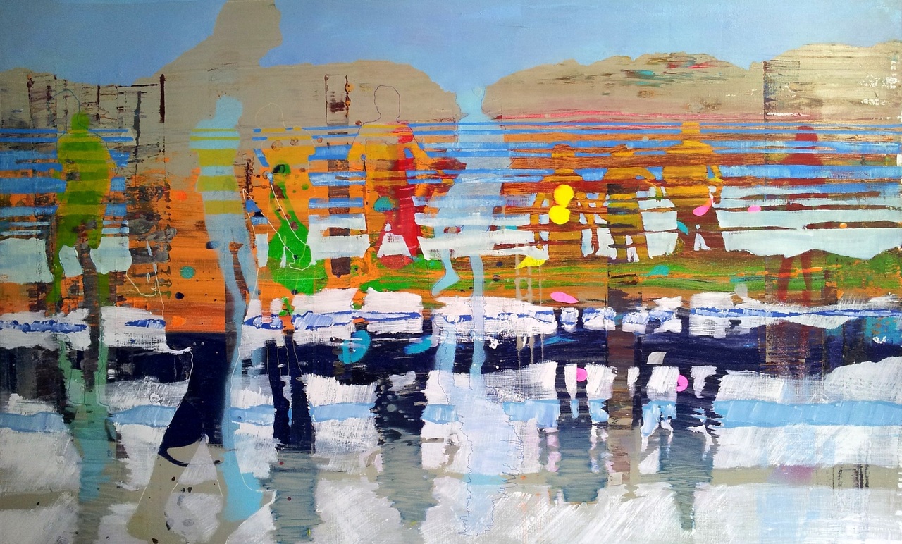 Silhouetten en landschappen worden lijnen en vlakken en vormen samen een compositie. Op basis van alledaagse beelden ontstaan geabstraheerde landschappen. Daarin zijn de mensen en waar ze mee bezig zijn, af en toe nog zichtbaar of herkenbaar.