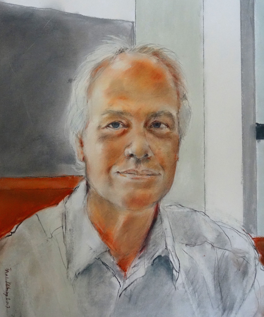 Geboren in 1951. Autodidakt en werkzaam geweest als biologieleraar, vaardig met het krijtje. De houding van het lichaam en de uitdrukking van het gezicht hebben ook buiten het beroep mijn aandacht. Construkties prikkelen mijn fantasie, maar andere onderwerpen en technieken ga ik niet uit de weg. Ik werk vooral in het atelier van De Toets in Zeist. Daar onderhoud ik mijn vaardigheid.