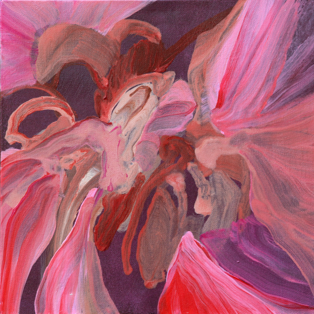 Het is mijn manier van kijken naar de dingen....De bewegingen die ik maak in de verf.... De beelden zijn sensueel en met een erotische associatie. Dit is niet voor iedereen waarneembaar. Mijn inspiratie vind ik in het binnenste van bloemen ( insideofaflower) , in schelpen en vruchten... Door in te zoomen op de kwaststreken van eerdere werken ontstaan er nieuwe beelden. Losse vormen die een eigen leven gaan leiden. Ze lijken heel vleselijk en lichamelijk. Ik houd zoveel van verf dat ik verzamelingen aanleg van losse kwaststreken en vlekken op een transparante ondergrond. Zo ben ik steeds op zoek naar vernieuwing in mijn werk. Naast tekenen en schilderen maak ik ook collages en kleine objecten. ZIE ook instagram : inekedimphiclaessens