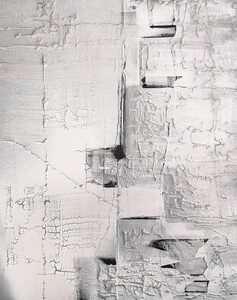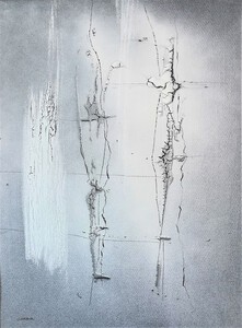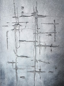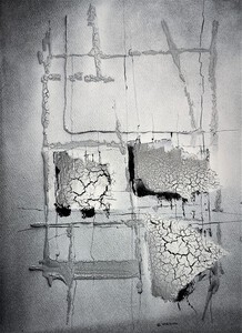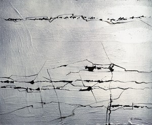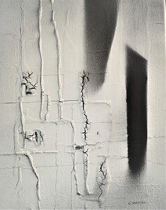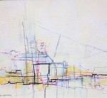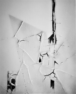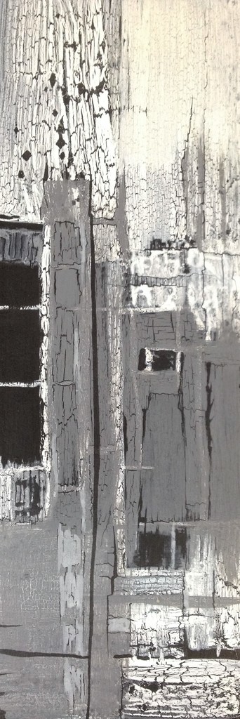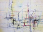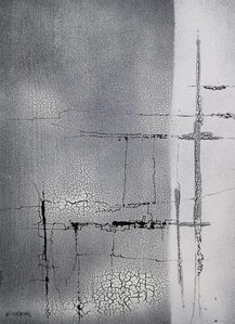 architectonische vormen in lyrisch abstracte schilderijen die gerelateerd zijn aan ( breuk)lijnen in het rots landschap van de Noord-Vogesen.