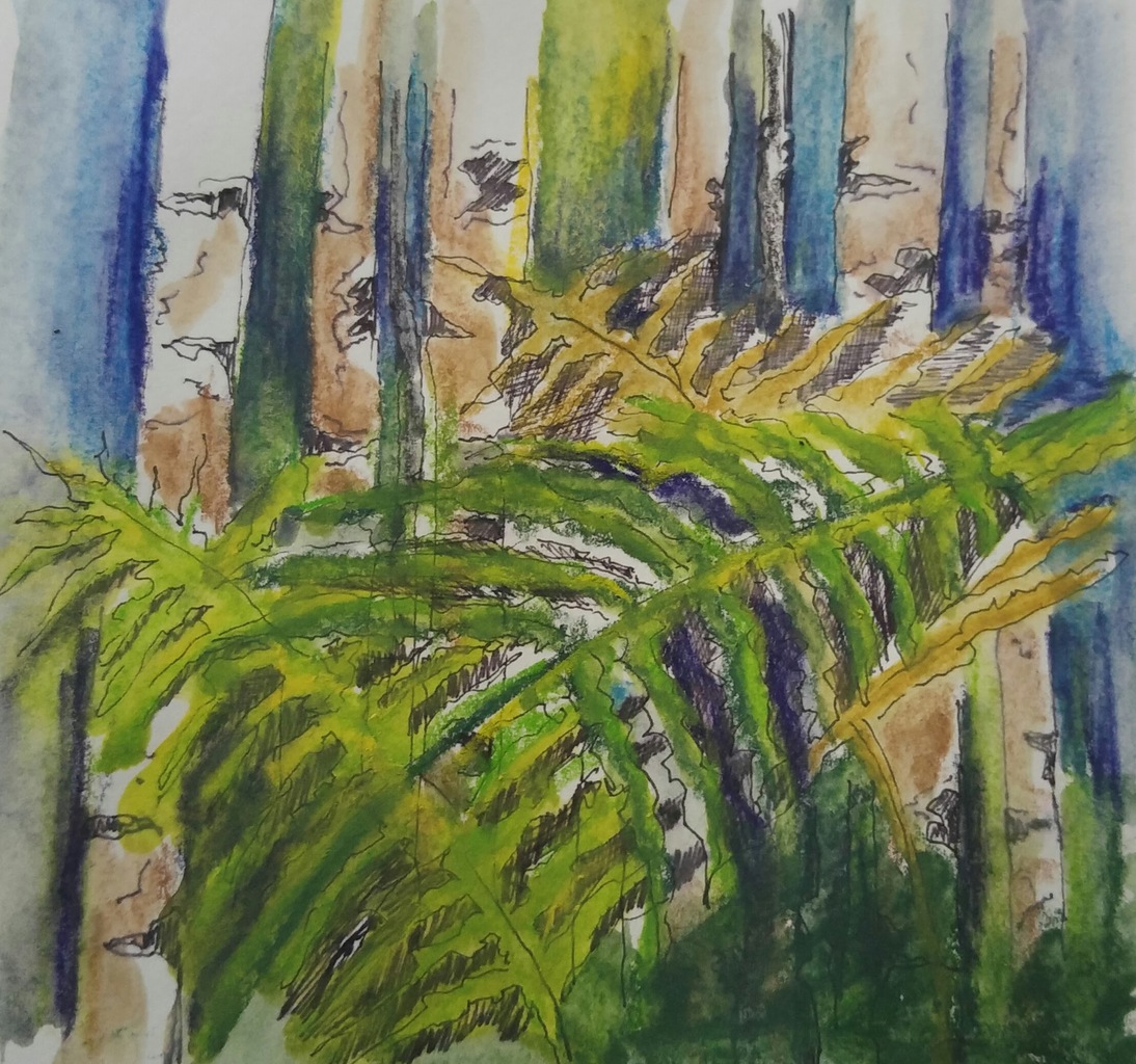 Mixed Media Natuur Berken Varens