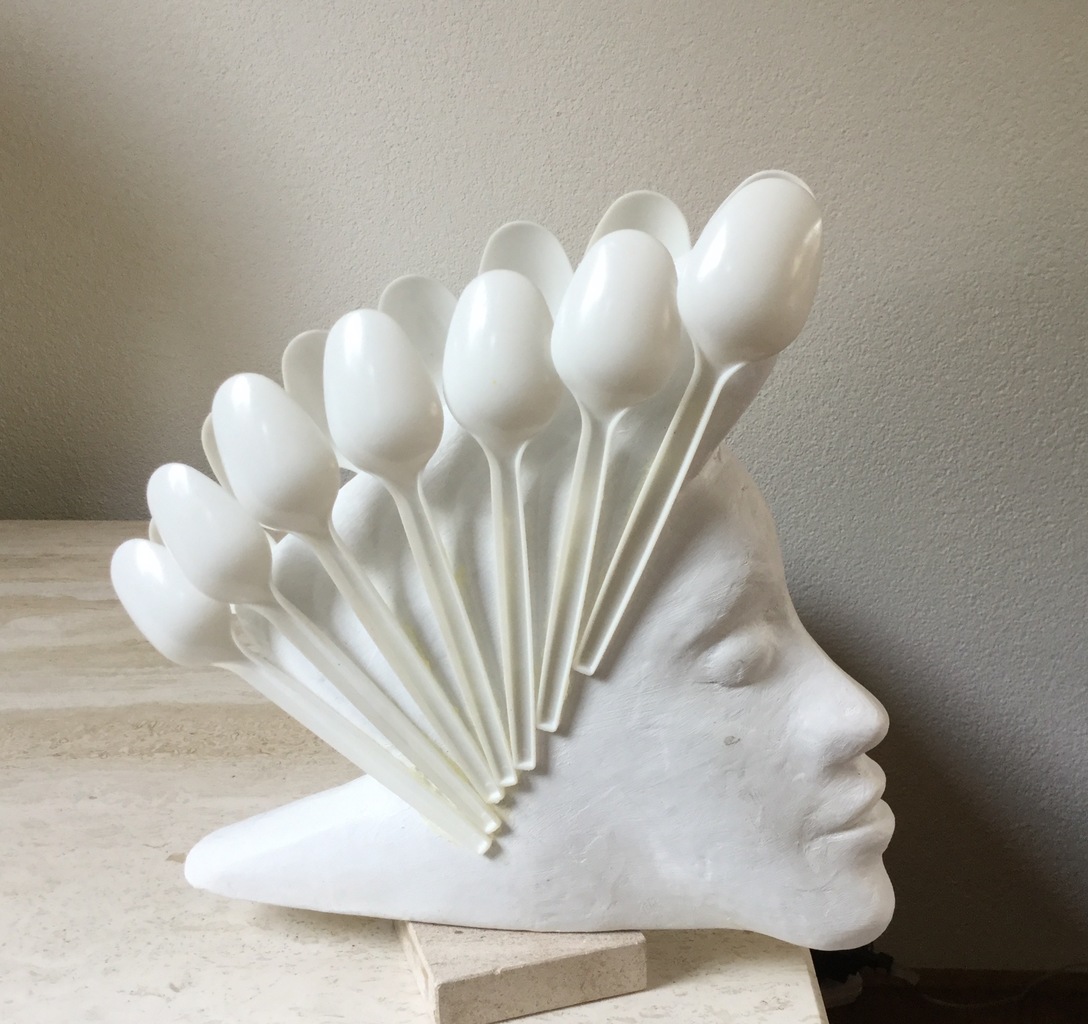 Grappige combinatie van vorm en materiaal. Hardschuim , plastic , steen en papier