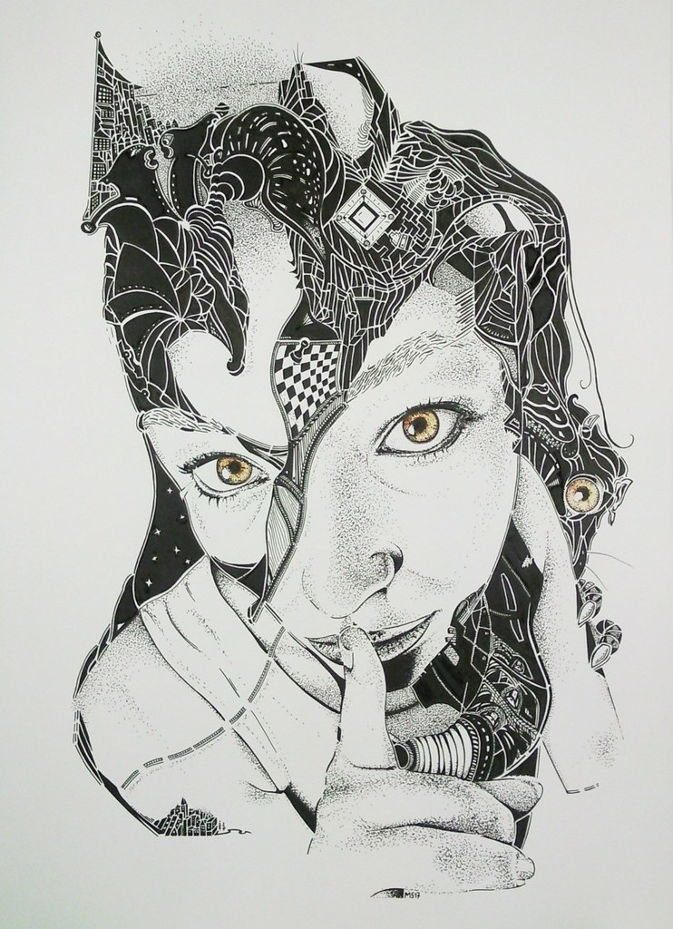 Wit Zwart Tekening Inkt Drawing Michael Stil Quiet Stockfish
