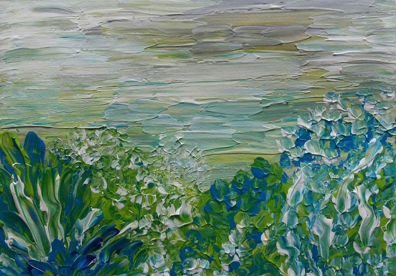 Untitled nr. 001. Blauw bloemenveld op acrylpapier. Fingerpainting met acrylverf.