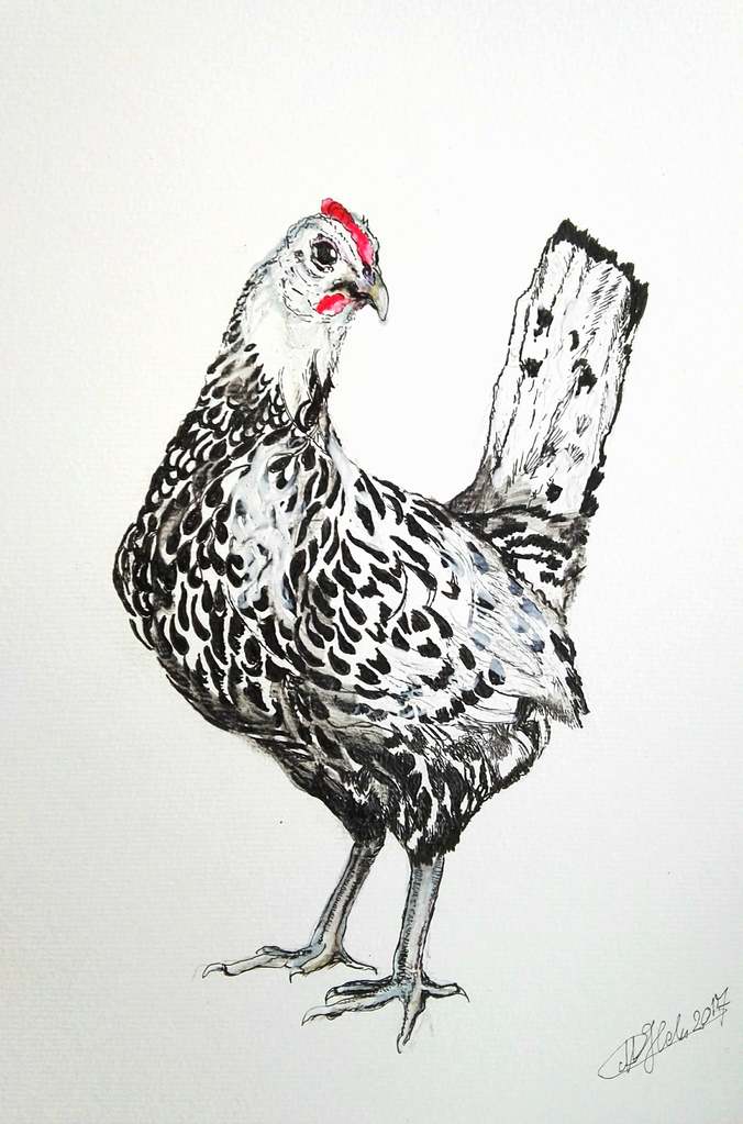 Wit Rood Zwart Vrolijk Inkt Kippen