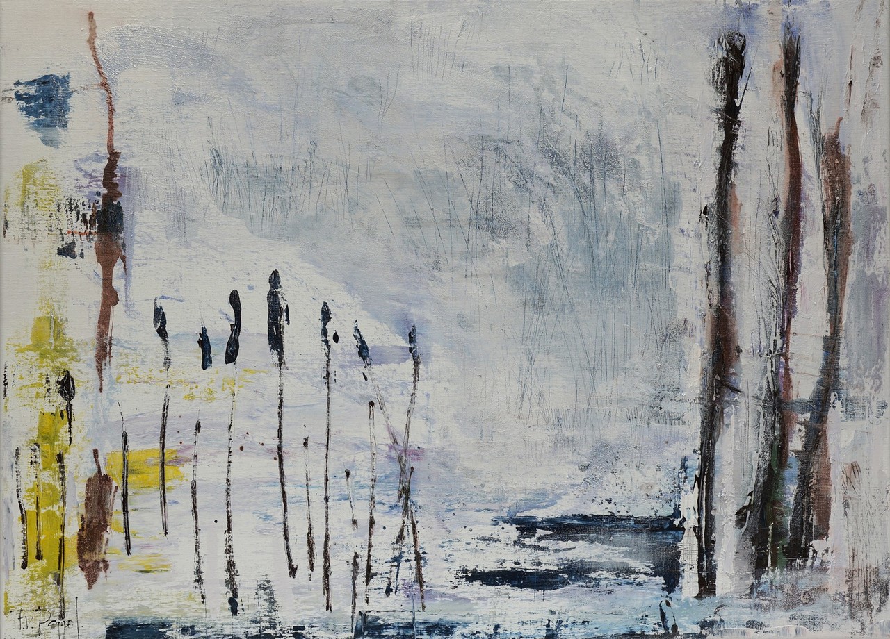 Bij de kunstenares zijn de waarnemingen van het landschap verinnerlijkt.Het zijn de elementen van de omgeving waar zij zich in bevind die indrukken geven die achterblijven; rieten randen -aangetaste stenen -resten van fossielen,lucht-water-land.De doeken stellen niet een bepaald landschap voor, maar bevatten vaak meerdere momenten. Er ontstaat een gelaagdheid die psychologisch zeer interessant is omdat geen specifieke plaats wordt aangegeven,in de schilderijen kan ieder zijn reis maken.De schilderijen ademen een weloverwogen langgerekte stemming die tijdloos ruikt en waar je lang naar kunt kijken.Het blijft een zoektocht naar evenwicht van nieuwe beeldelementen ,compositie,en stilte scheppen in het werk.