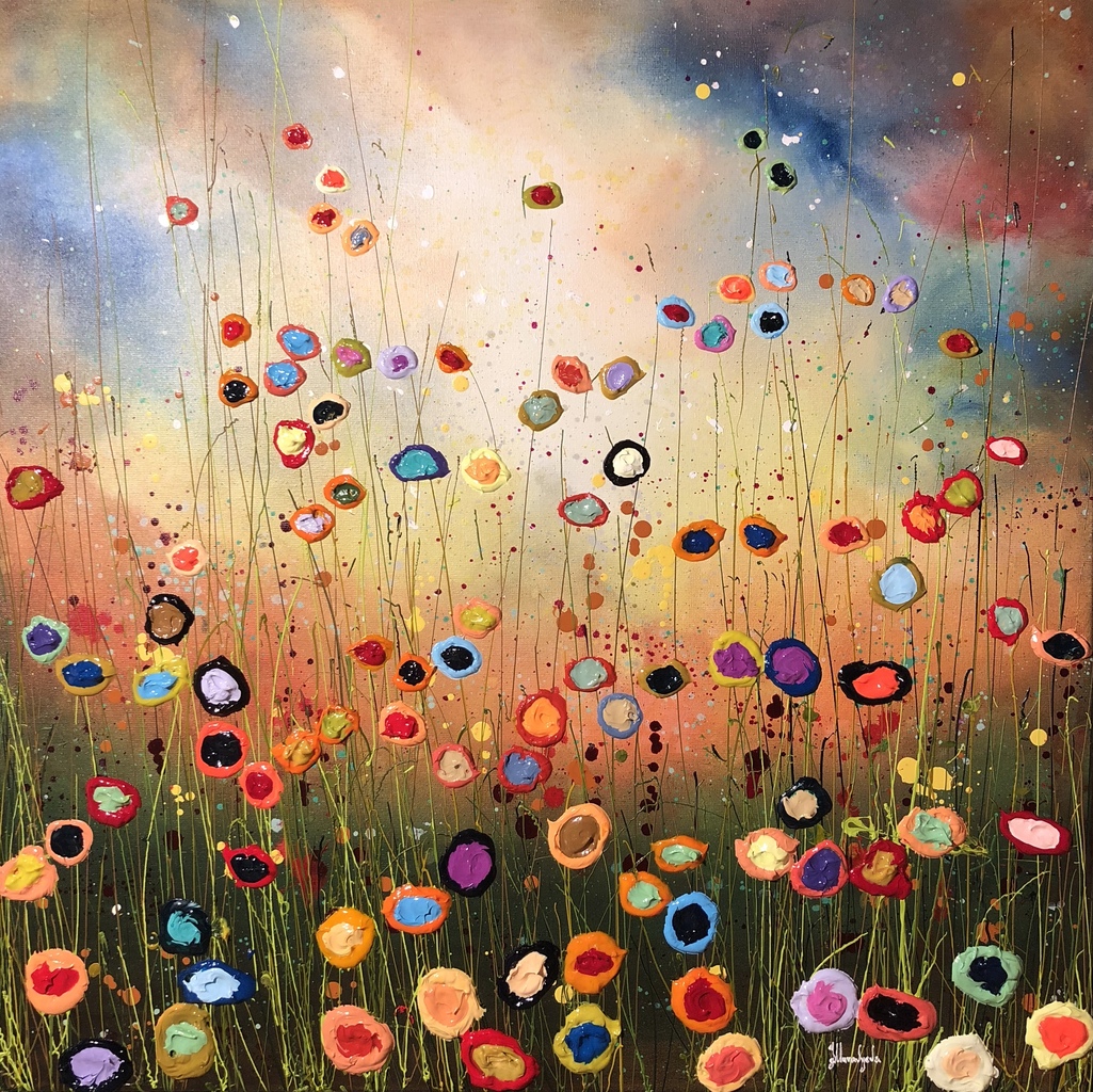 Een schitternend nieuw doek van Yulia, nieuwe kleuren, de bloemen spatten nog meer van het doek.