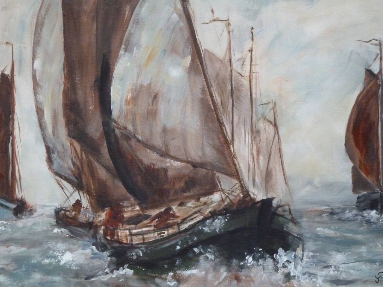 Jacolien 1950, (Frl), haar werk is figuratief en impressionistisch. Sfeer,harmonie,verlatenheid,inspireren haar om havens met schepen, landschappen en mensen te tekenen en te schilderen met acryl, olie verf, aquarel, houtskool, kryt, inkt.