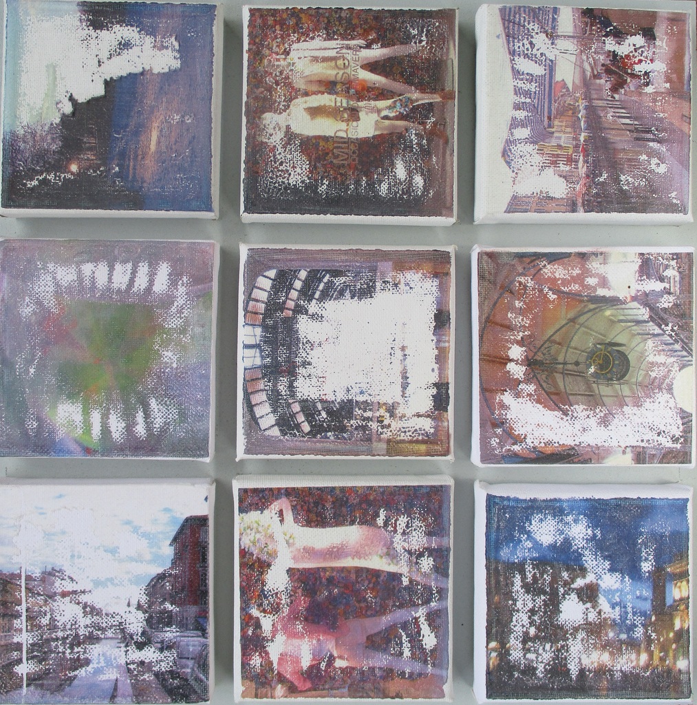 Schilderij bestaande uit 9 bewerkte foto's op doek.