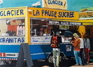 Ik maak schilderijen in acryl en olieverf. Op deze schilderijen schilder ik mensen in alledaagse situaties. Zo heb ik een serie muziekkorpsen. Vakantiegangers maar ook een man met een afstandsbediening een kind op een paard. Het is een soort vertraagd dagboek verslag van mijn belevenissen.