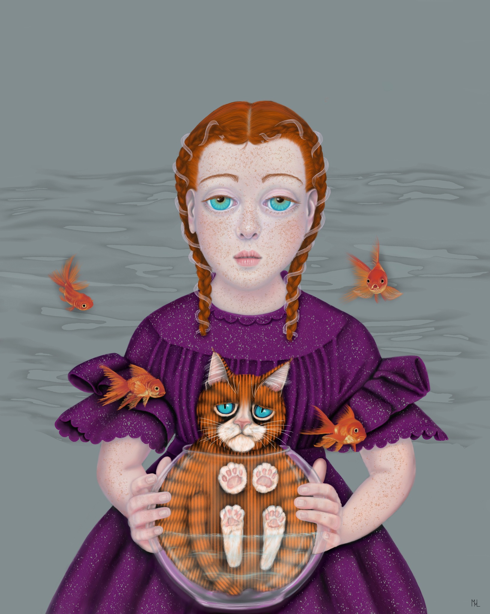 Meisje Digitaal Kat Verhalend Girl Surreëel Cat Goudvissen Surreal Narrative Digitalart Goldfishes