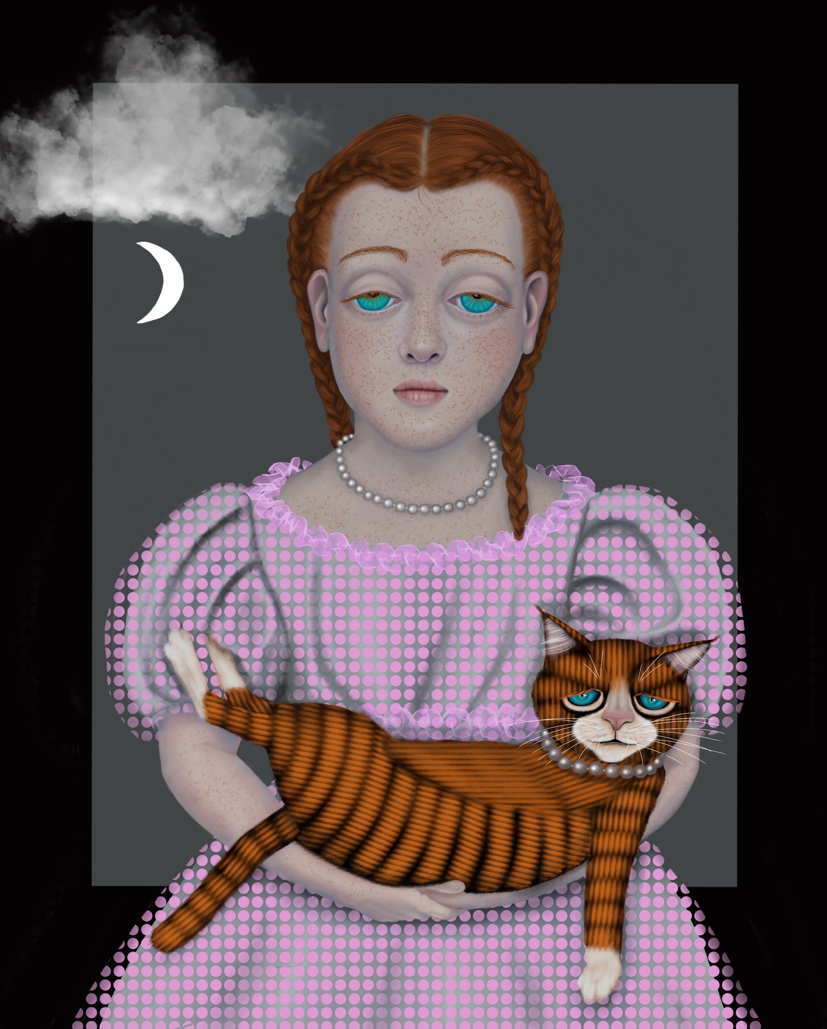 Meisje Digitaal Kat Verhalend Nacht Girl Surreëel Cat Surreal Parels Night Narrative Pearls Digitalart