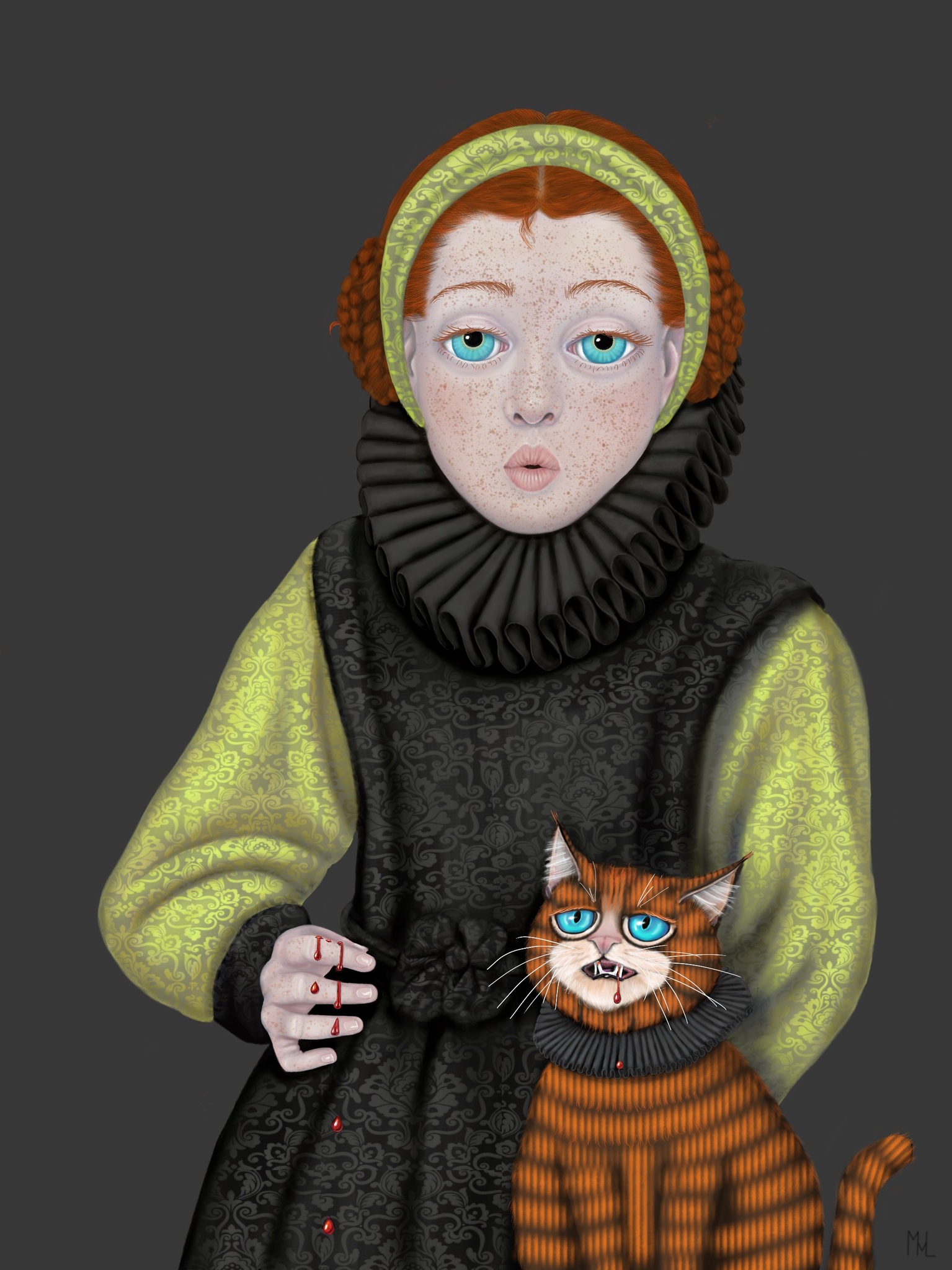 Meisje Digitaal Kat Verhalend Girl Surreëel Cat Surreal Narrative Digitalart Bloeddruppels Blooddrops