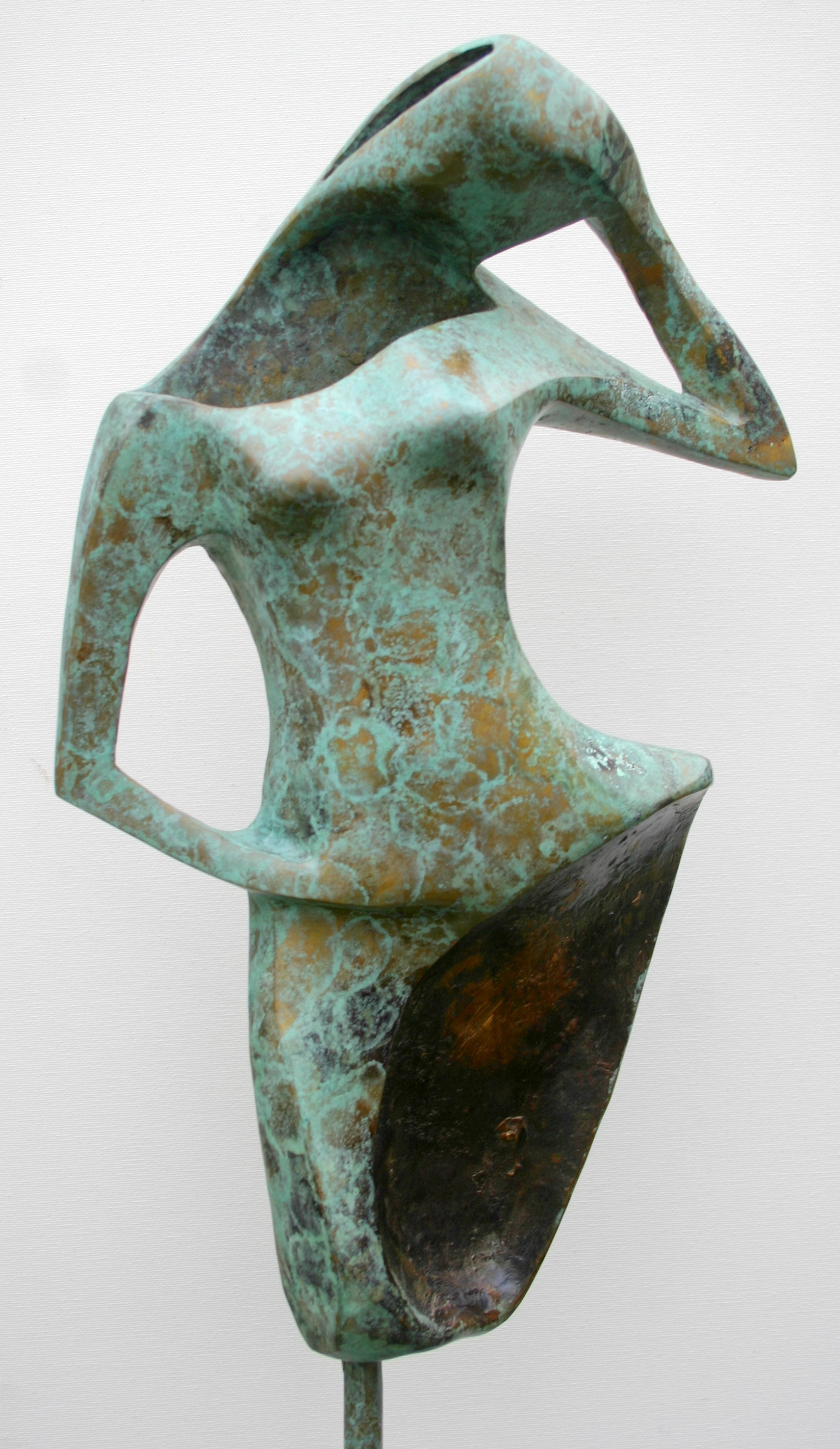 Blauw Figuratie Brons Groen Vrouw Beeld Tuinbeeld Abstraherend Evenwicht Hoog Balans Balance Aaibaar Aaibaarheids Gehalte