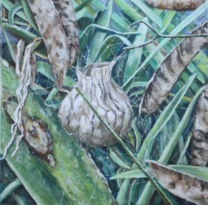 Nies van Dijk schildert met olieverf en eitempera. De dynamiek van vergankelijkheid in de natuur is een terugkerend thema in haar werk.
