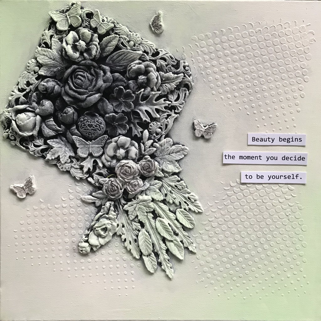 Klei, structuurpasta en acryl op doek.