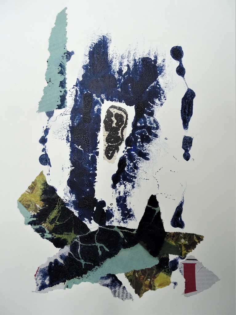 Het vroeg verscheidene geconcentreerde momenten / om in de buurt te komen. // Het nam één ogenblik van onoplettendheid / om op dit punt te geraken. mixed media, collage, monoprint