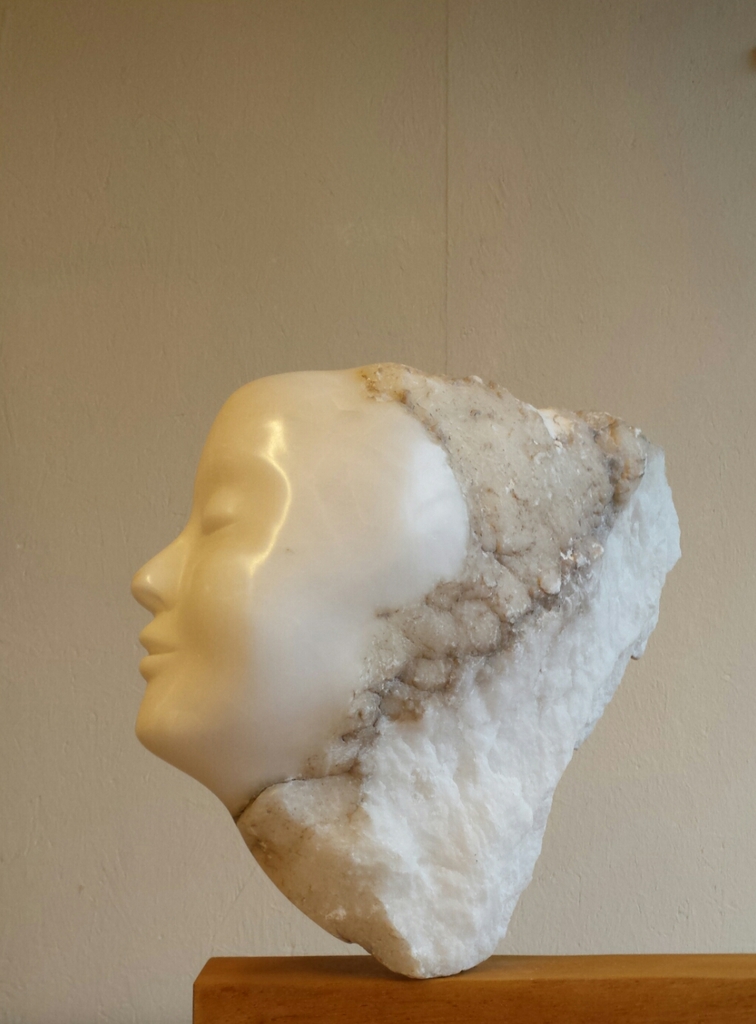 Albast op hoge houten sokkel ( beuken)