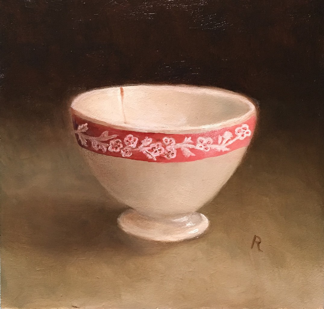 schaaltje *Dit schilderij is met olieverf en penseel opgebracht. *Ingelijst. * Vernislaag is aangebracht mat/glans. *Houtenpaneel. *Het schilderij is gesigneerd op de achterkant met de eerste letters van mijn voor en achternaam (RP) Renate Peters en met de datum dat het schilderij is gecreëerd. Aan de voorkant is er de letter R (van Renate) te vinden rechts onderin.